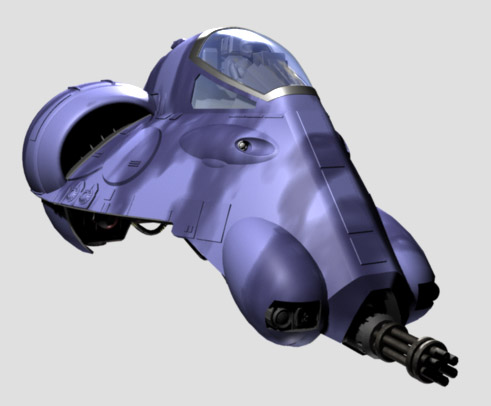 I say "Work in Progress" but I don't think I've touched this for ages. This funky vehicle is based on one of Stuart Jennet's sketches and was originally meant to appear in Warthog's Bounty Hunter. The model is pretty much complete but I've yet to start on the textures.