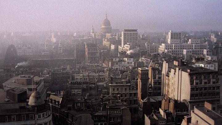 Hold the mouse over the image to see the original archive footage. Another image from Jericho (ITV, 2005). I created this shot from 1960's archive material from Getty Images. I used Digital Fusion to remove the dirt and scratches, Photoshop to fill in the gaps at the side, and alter some details, and Maya to create chimney smoke and tiny flying birds.