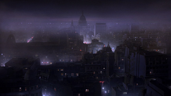 Hold the mouse over the image to see the original daytime shot. Another image from Jericho (ITV, 2005). For this shot I reworked my previous daytime shot to create a smoggy night. Again, it's mostly Photoshop, but with some moving traffic created in Maya.